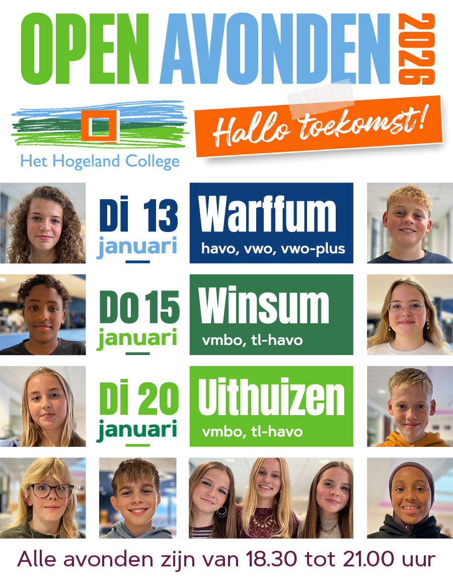 Heb je de Open avond gemist? Of heb je de Open avond wel bezocht en wil je graag nog meer weten? Dan is het mogelijk dat we bij jou in de klas met enkele leerlingen en een docent van onze school informatie geven. Zo kun je alle vragen stellen, die je dan nog hebt over onze school. Als je dat wilt, moet je wel eerst overleggen met je meester of juf. Je kunt daarna je verzoek mailen naar Gerlies Nijboer, g.nijboer@hogeland.nl